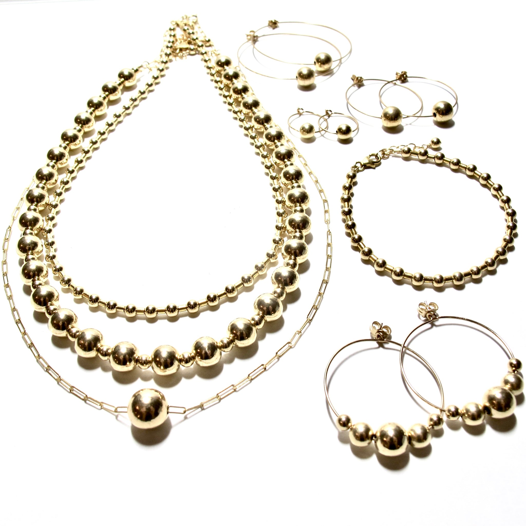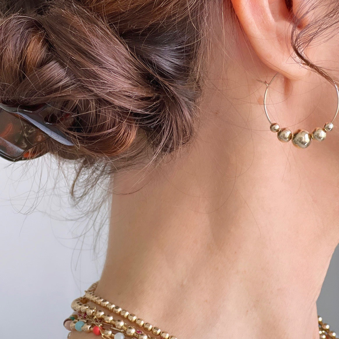 medium 30mm gold filled hoops with a mixed size round gold filled beads