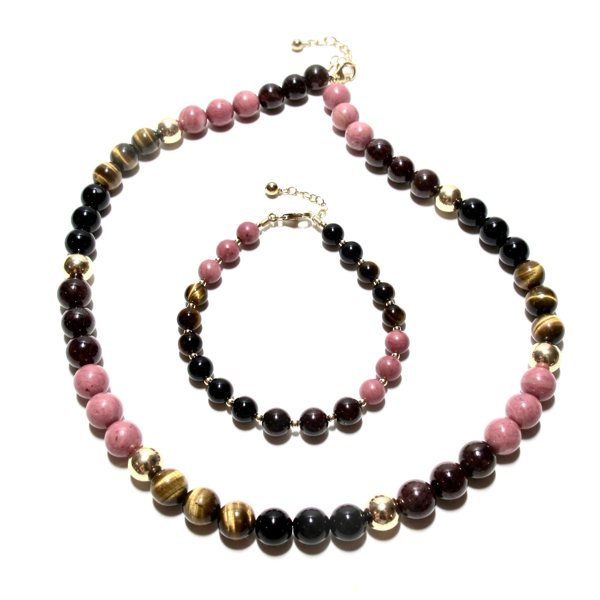 Smooth round 8mm mixture of semi precious stones and gold filled beads, with an adjuster chain giving a choice of lengths up to 45cm. See also the bonfire night bracelet.